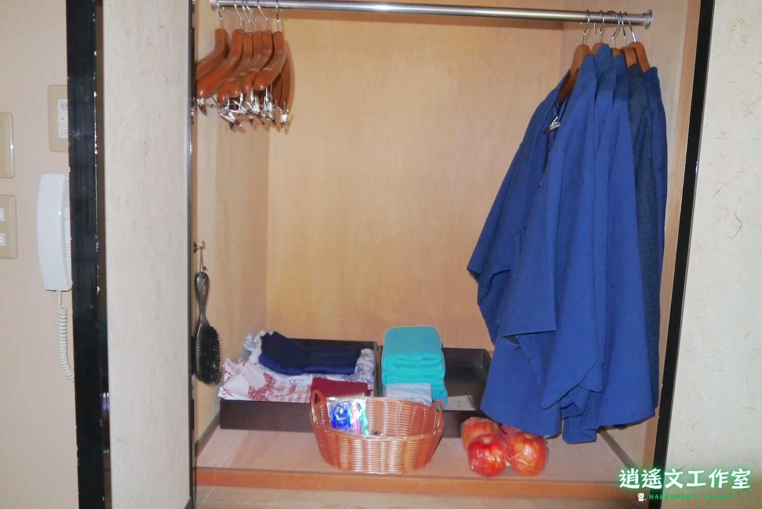 房間裡有電視、茶具、熱水、冷氣機、除溼機、冰箱、保險箱、棉被、清潔用品等等,基本上該有的都有提供,最讓我們六人開心合照,就是浴衣啦~旅人們可以穿著舒服的浴衣在民宿裡走動,甚至穿出去散步唷!