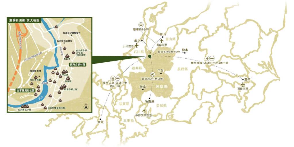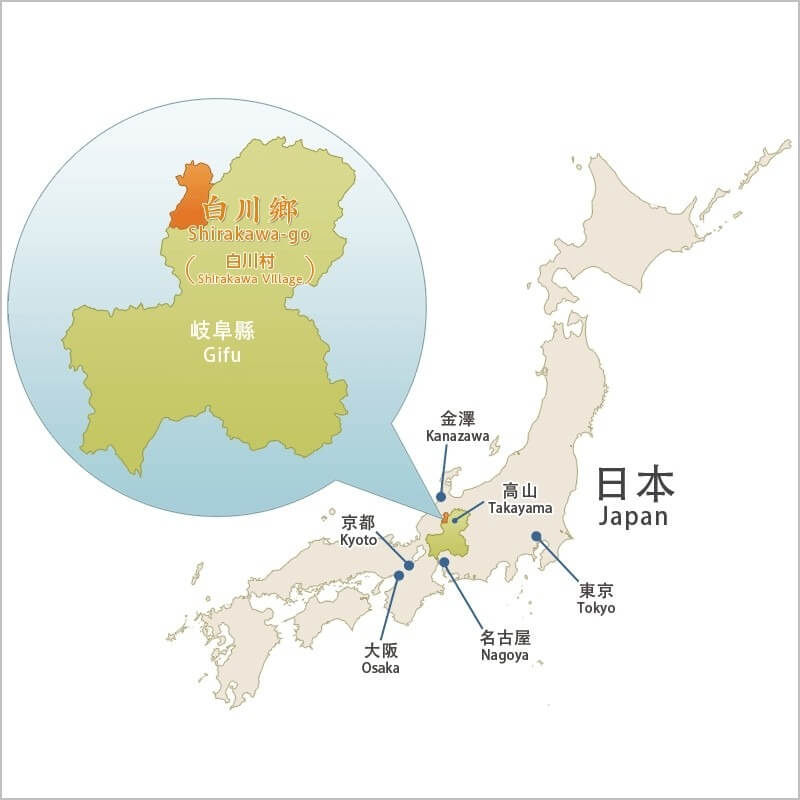 白川鄉位於接近日本中心岐阜縣的西北位置。