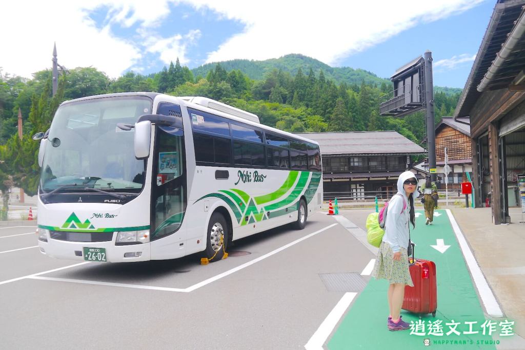 我們是在高山站的濃飛巴士總站,搭乘濃飛巴士到白川鄉站下車,乘車前最好先上網預約座位,以免該班次客滿,影響接續的行程。從高山站到白川鄉站約 50~60 分。