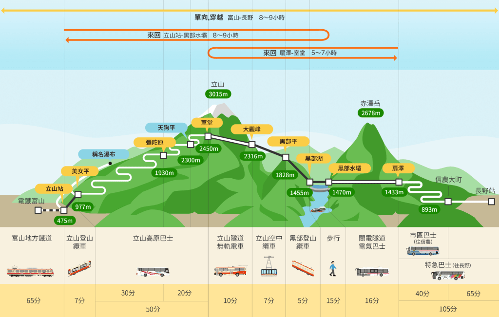 走完整個立山黑部阿爾卑斯山脈觀光路線,需要多久?