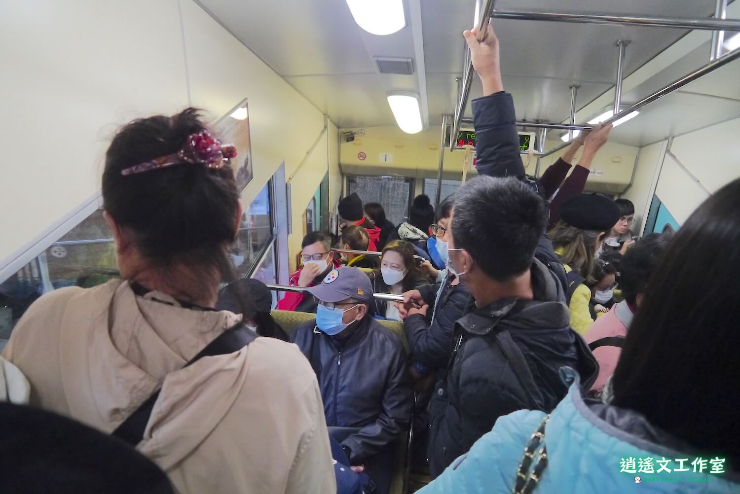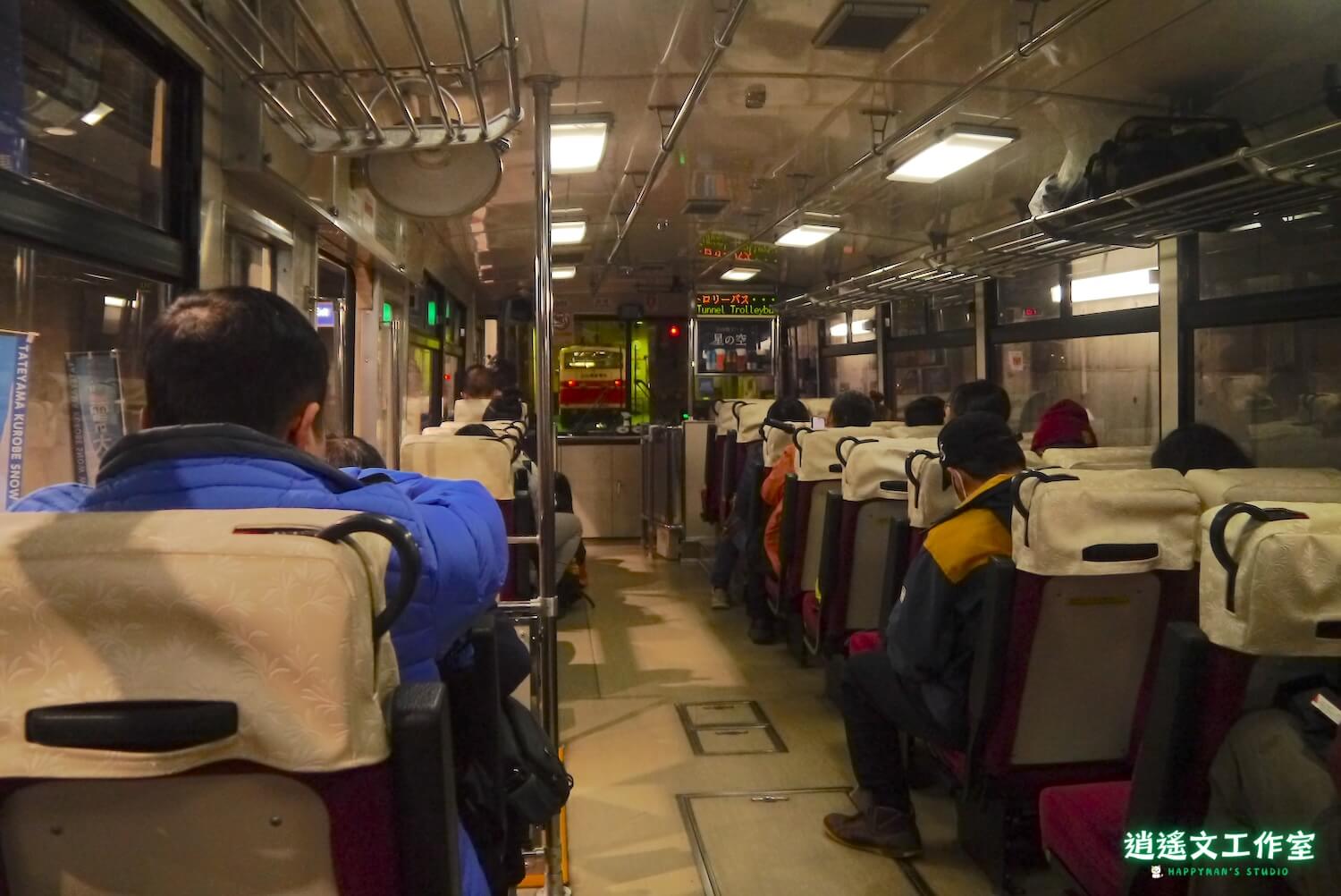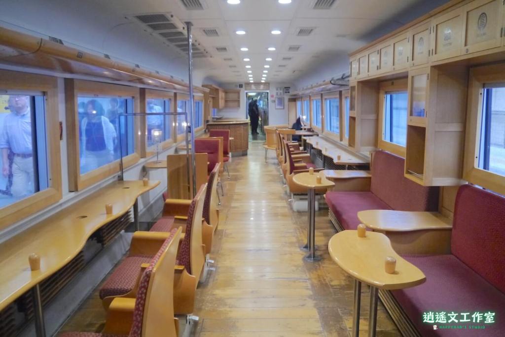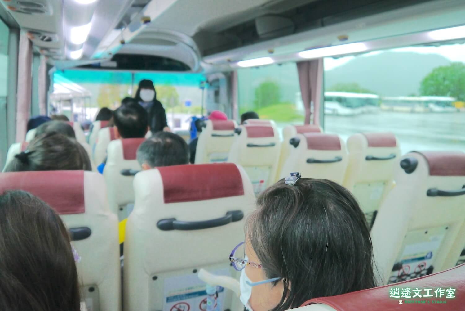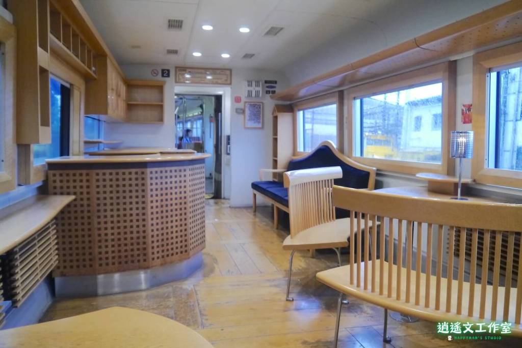 上車後,原本就坐的我們,在我發現後方有特別座位,大家便起身去第二三車廂體驗,望著窗外下雨的景色,然後小睡一下到立山站。