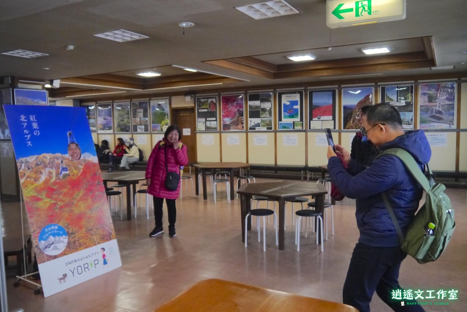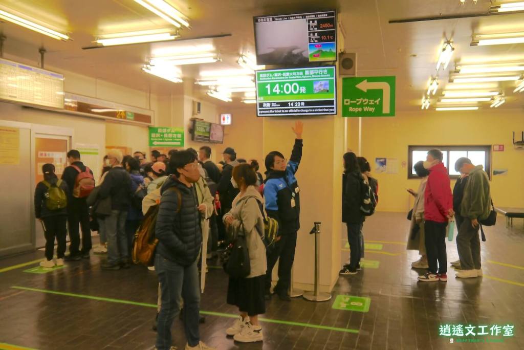 在室堂大廳,陸續來去好多旅客,可見到大多數是團客,同進同出。稍微觀望各個區域,有餐廳區、有禮品區、有交通區、有廁所區等等。