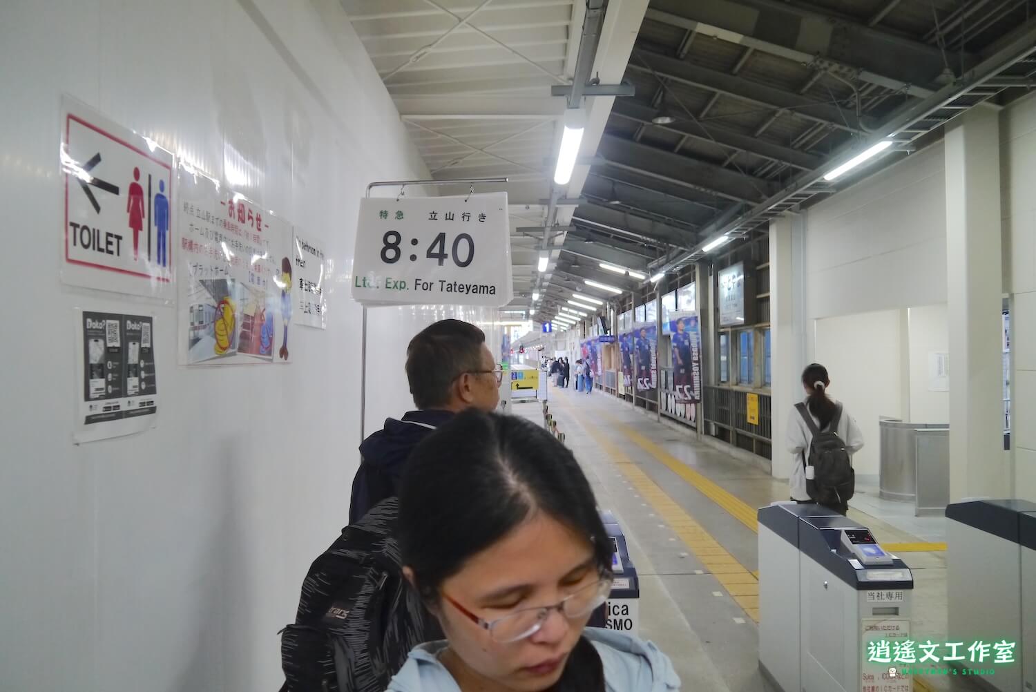 享用完美味早餐,大約八點撐傘去富山車站,繼續走進去,看到立山特急告示,便走過去排隊,後方有乘客詢問,原來對方是新竹人呀!