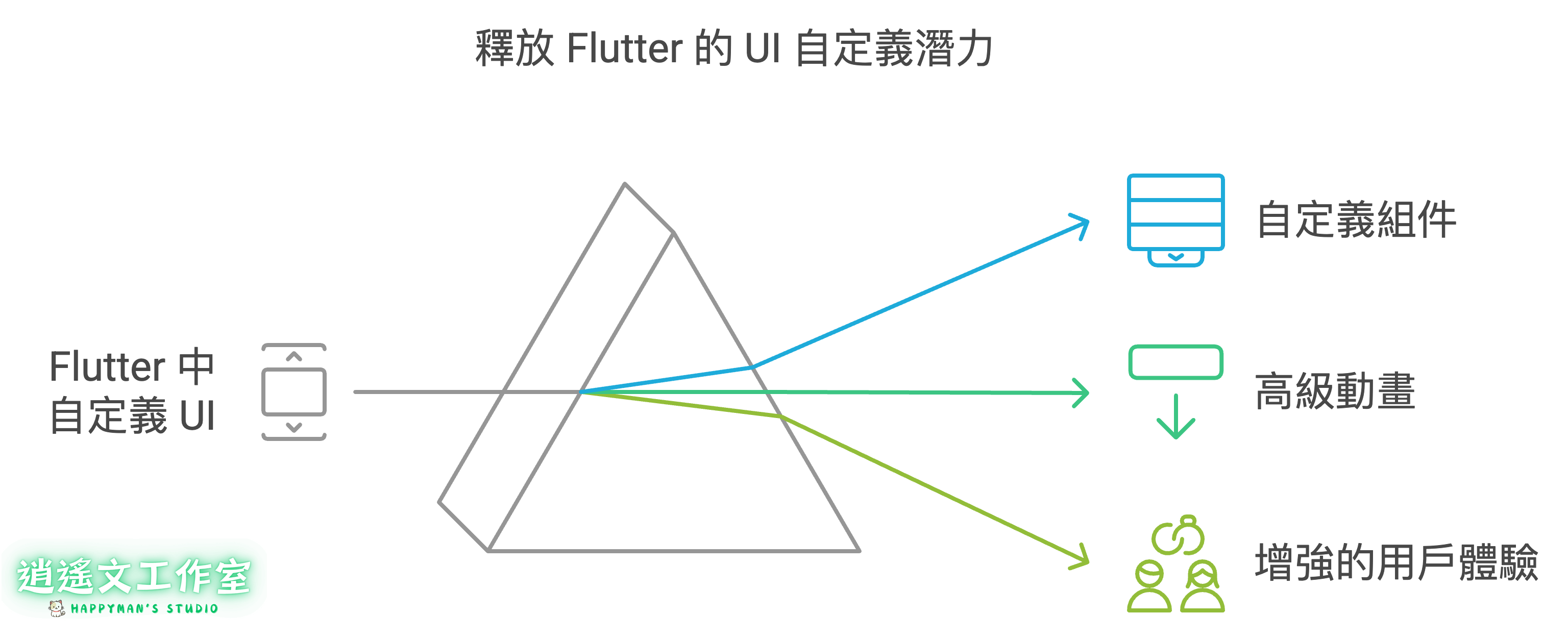 Flutter 允許開發者創建自定義的 UI 組件,並且支援高級動畫和過渡效果,提升用戶體驗。