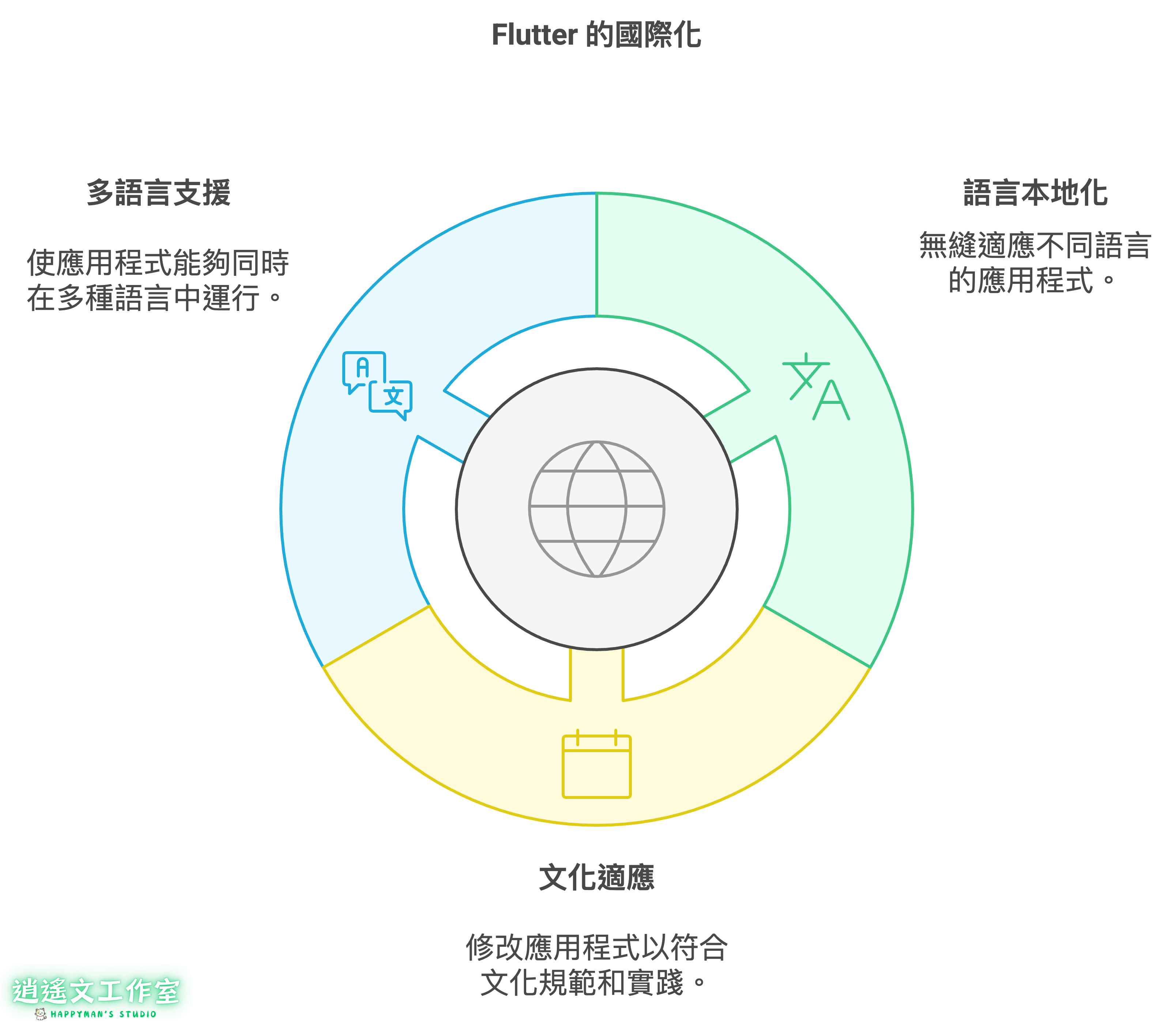 Flutter 提供了內建的國際化支援,開發者可以輕鬆地將應用本地化,支援多種語言和文化。