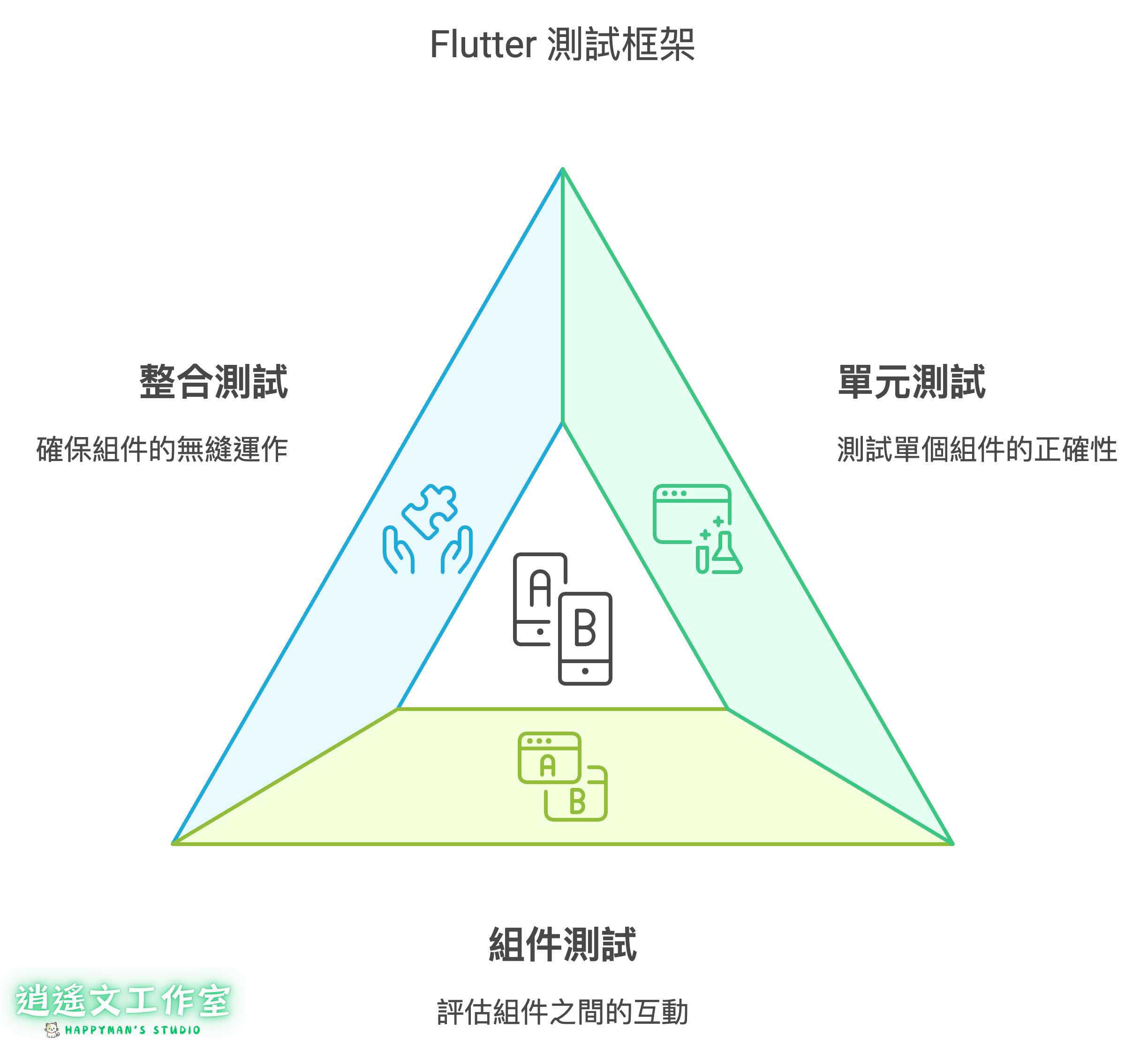 Flutter 提供了強大的測試框架,支援單元測試、組件測試和整合測試,幫助開發者確保應用軟體的品質。