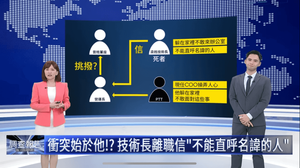 - 錄音中,有員工提到 Renee 在離職前曾想調部門但未果,以及她對於被影射散播 PTT 事件的不滿 [16]。