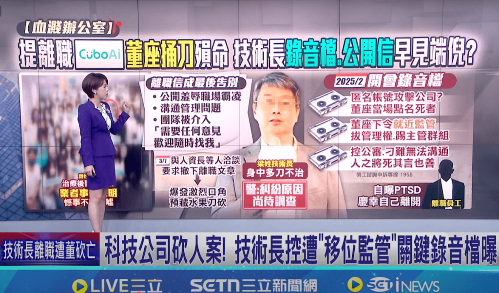 由於我是科技業的軟體工程師,新創科技消息很快就讓我看到驚悚的殺人事件,雲云科技董事長曾X新砍死技術長梁X凌⋯⋯😱