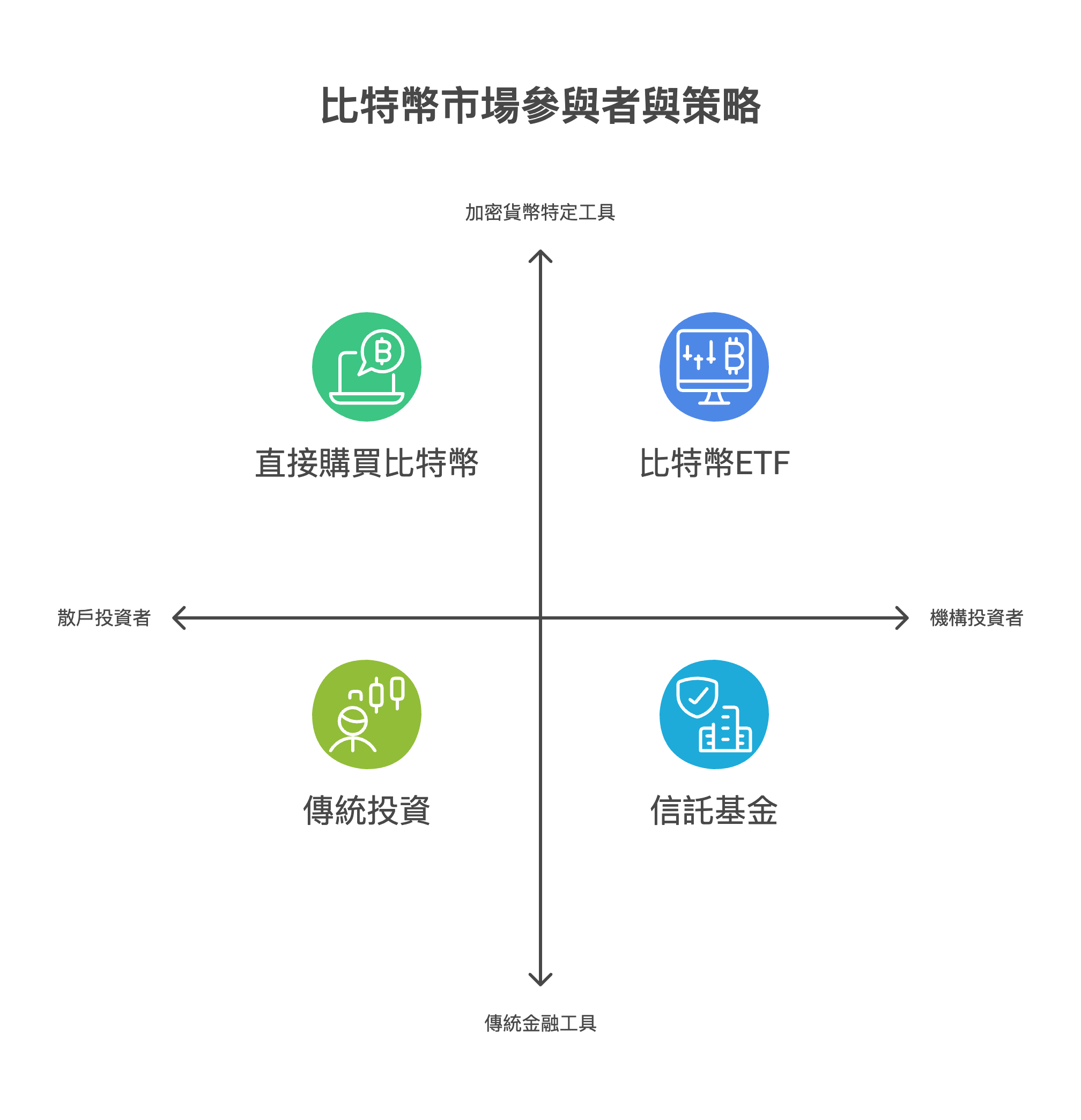 - 由於機構的資金多來自客戶且有合規要求,它們不能像散戶一樣直接在交易所購買比特幣。因此,需要設計符合傳統金融體系的產品來吸納資金購買比特幣。