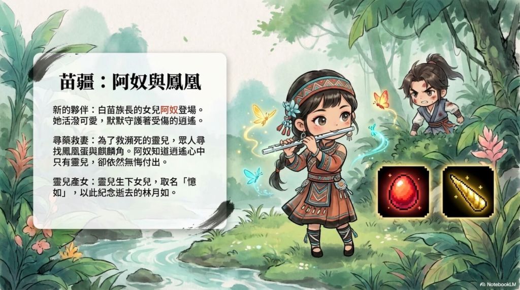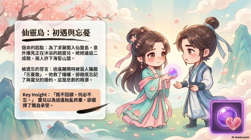 他們假借預防瘴氣之名,誘騙逍遙服下那顆名為「忘憂散」的藥丸。這顆藥丸救了嬸嬸的命,卻也精準地抹去了逍遙在仙靈島上的山盟海誓。