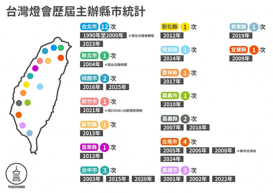 恰好在台中城 Taichung 粉絲頁看到台灣燈會歷屆主辦縣市統計,讓我回想起有多次去探訪的記憶。2009 年跟著國樂社去宜蘭團訓,就順道去看台灣燈會;2013 年回台中老家搭火車順道經過,便跟著高中同學下車來走過去欣賞。