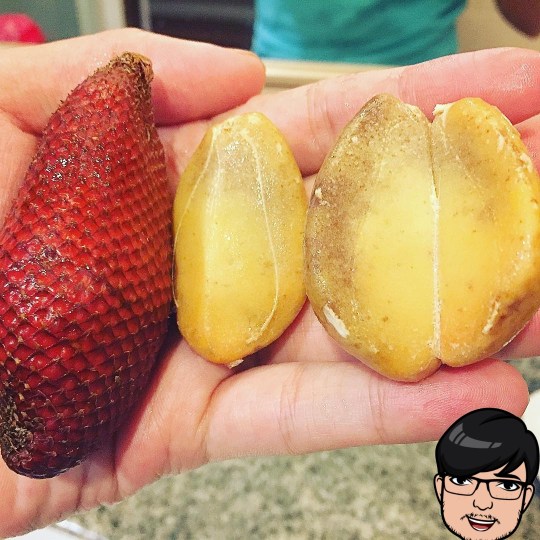 其中我認為最特別的就是蛇皮果。外型真的很像蛇的皮,摸起來挺是粗糙,手滑過去太快的話會受傷,不過剝皮還算簡單。味道是酸中帶甜,我試著嚐兩顆蛇皮果,滋味可真是讓人驚奇。