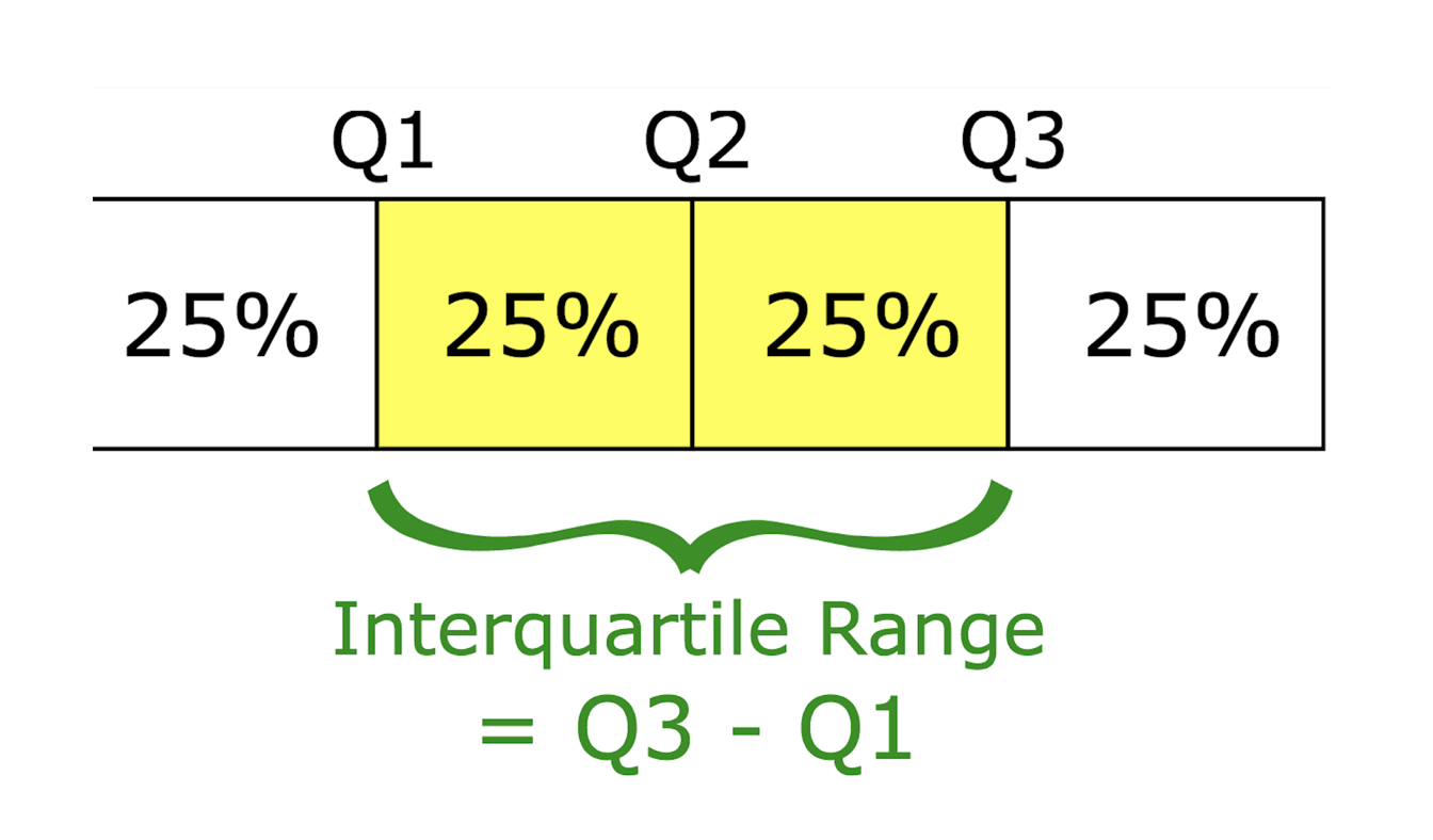四分位距(interquartile range, IQR)。是描述統計學中的一種方法,以確定第三四分位數和第一四分位數的分別(即 {Q1和Q3的差距)。與變異數、標準差一樣,表示統計資料中各變量分散情形,但四分差更多為一種穩健統計(robust statistic)。