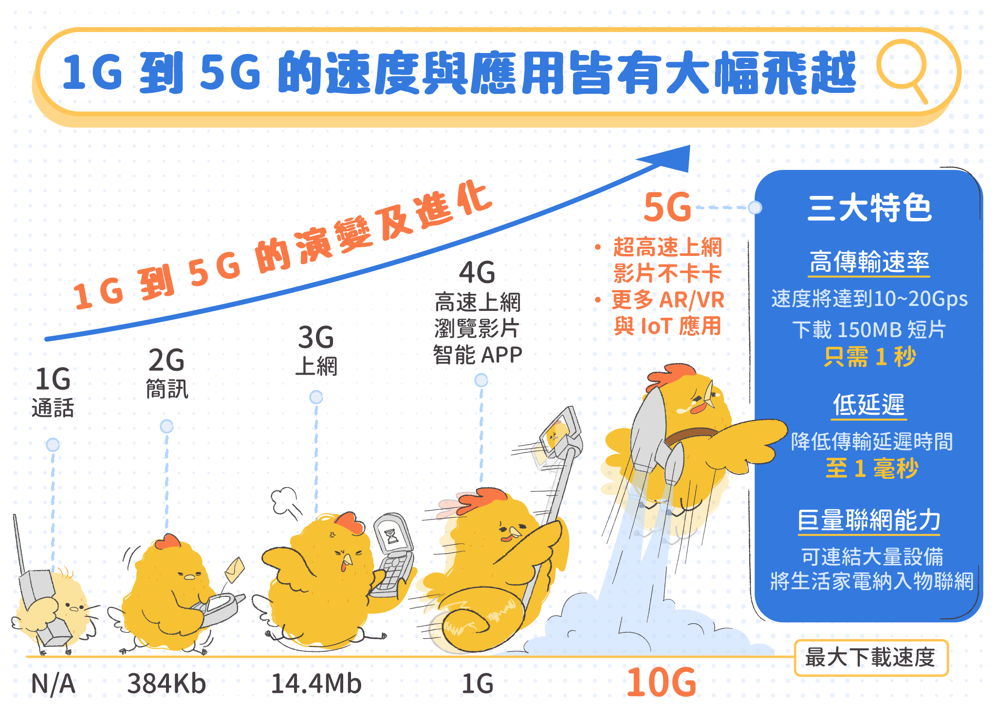 一般人如我者,只想要知道其中的差異,那就直接來看1G到5G速度與應用如股感所做的圖解: