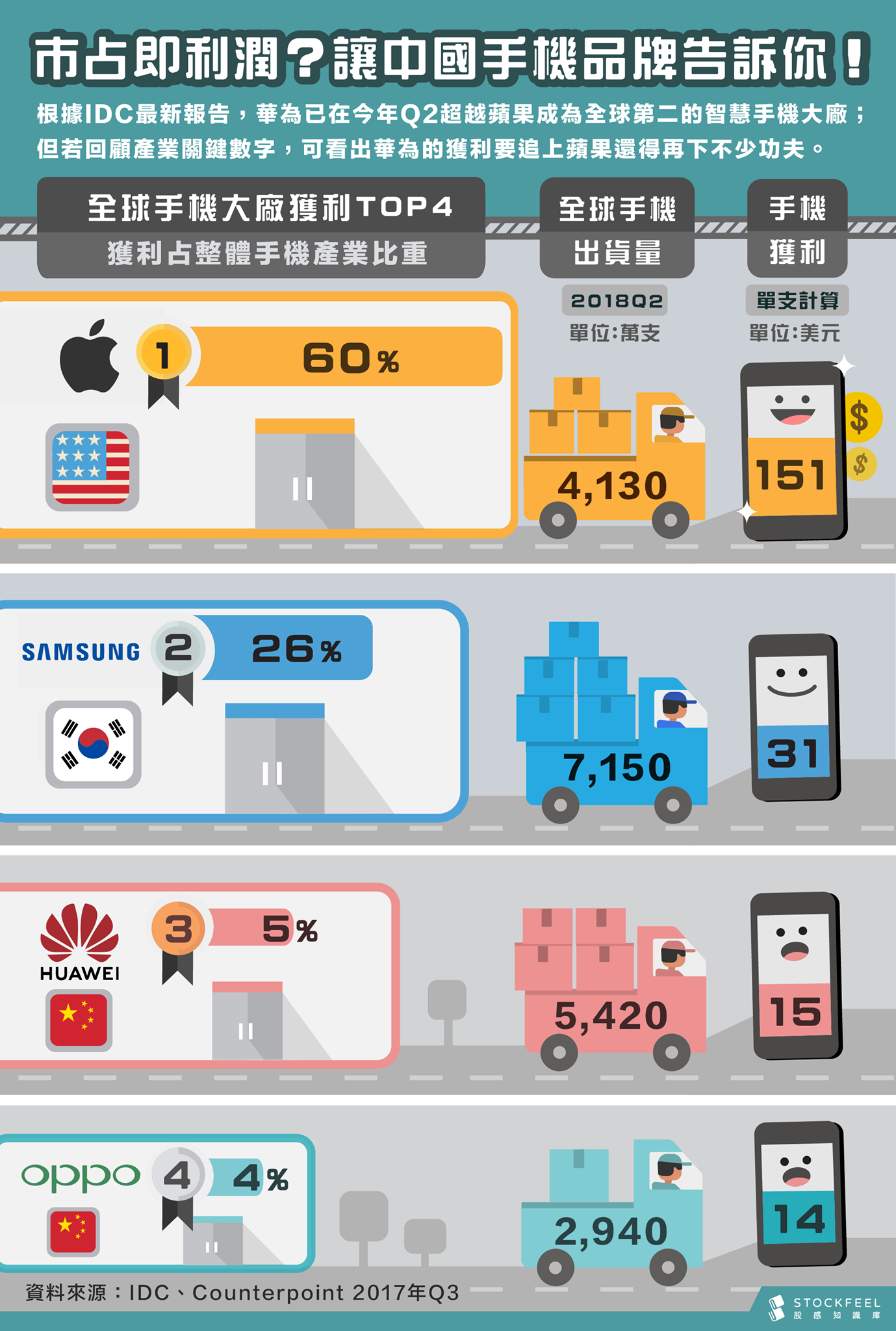 [圖解] 2018第二季前四大手機廠商