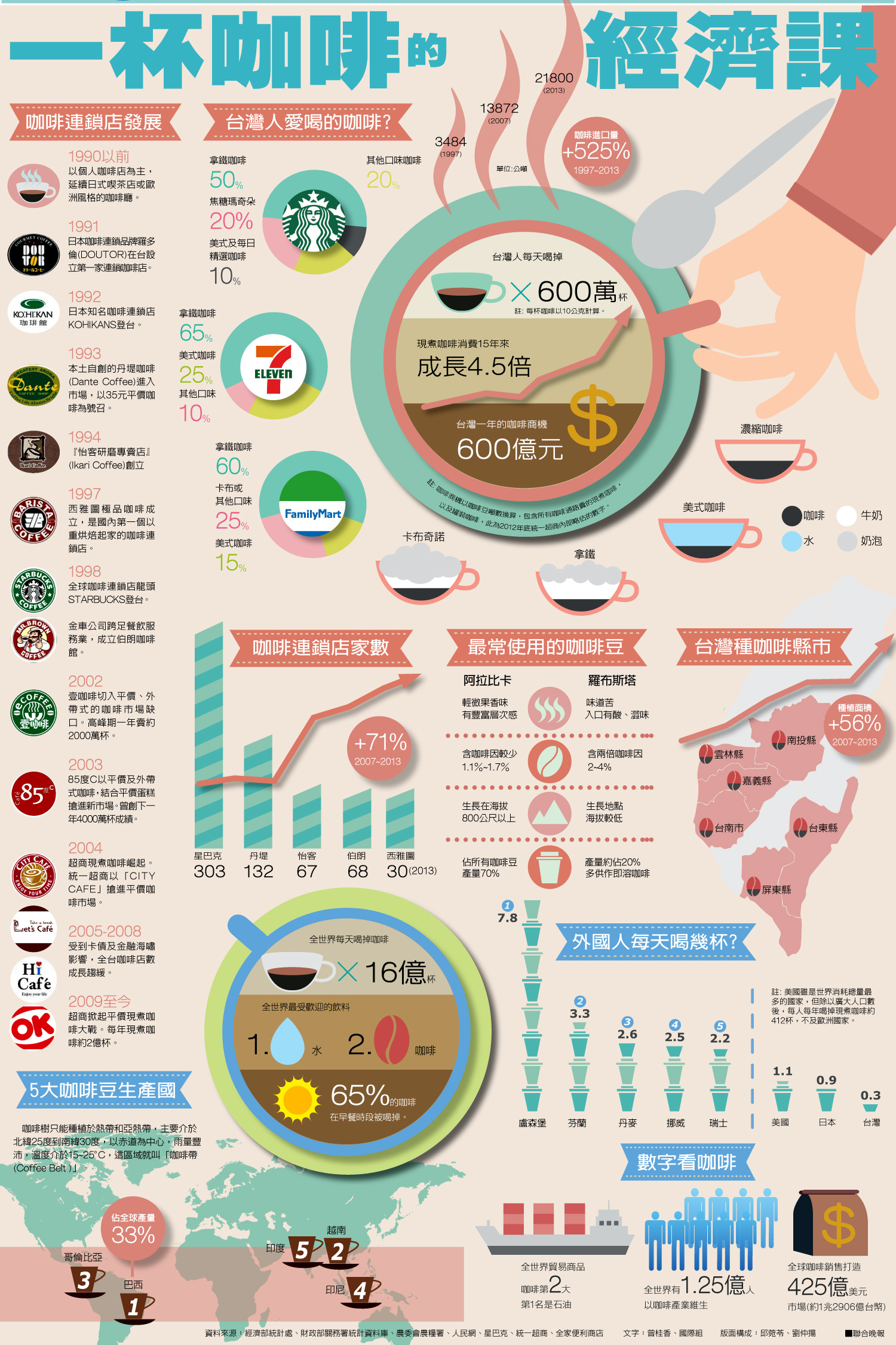 咖啡成份比例圖解大受迴響後,我在想台灣人近年來喝咖啡的情形是如何?雖然我偶爾或有機會才會喝杯咖啡,但總會對咖啡的香味記憶深刻,讓我在工作的時候,總是想像著我正坐在咖啡廳裡,悠然地寫著程式~