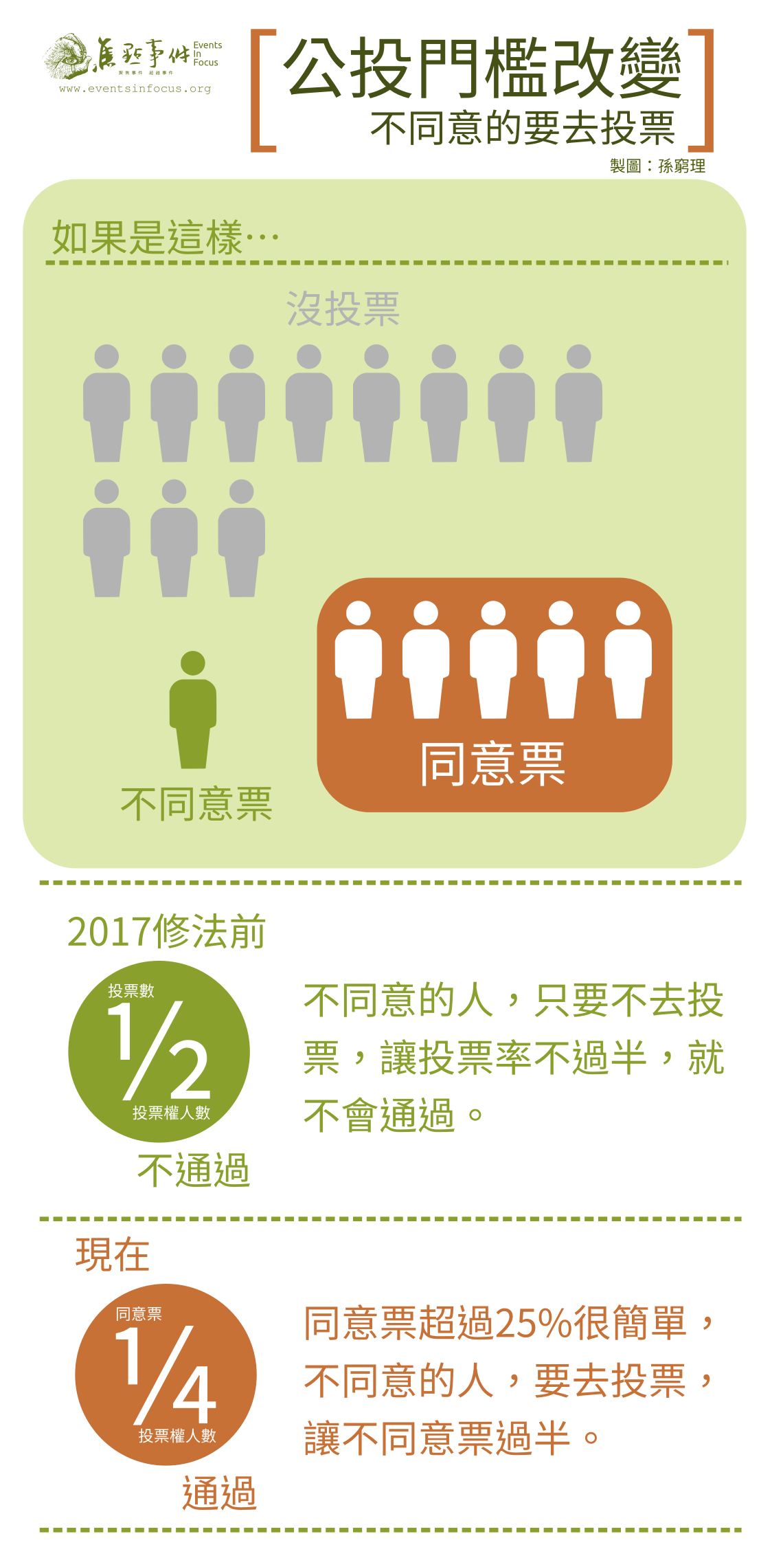 今年(2018)下半年,除了地方公公職人員選舉外,引起全國關注的就是「公投」。2003年12月31日《公民投票法》施行以來,台灣共舉行過6次全國性公投,但都因投票人數不到總投票人數2分之1門檻,而未通過+ 。但在2017年12月12日《公投法》修法後,全面下修提案、連署、通過的門檻。「公投」一詞沉寂10年,再次現身,便是百花齊放。