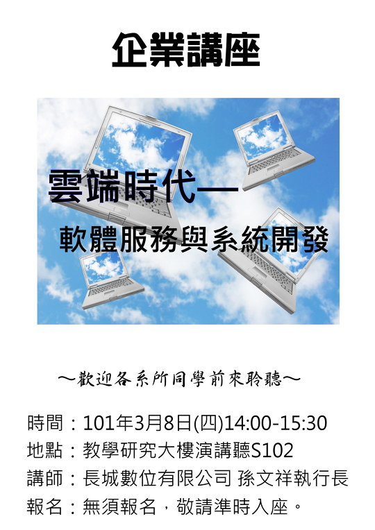 哈~話說太多,先來介紹昨日的演講者:長城數位有限公司孫文祥執行長,講題:雲端時代之軟體服務與系統開發。