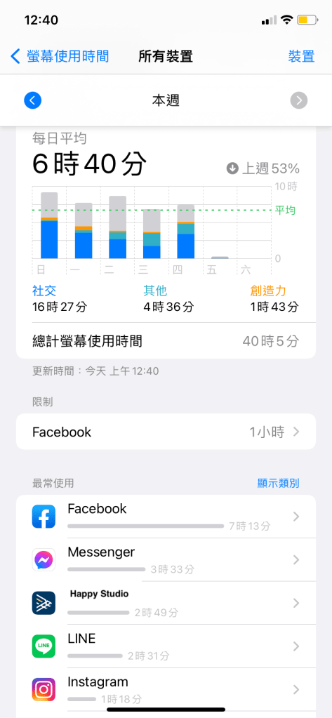 確實,我自己就是如此,此刻來回顧一下,我四月底那週臉書 App 使用狀況。