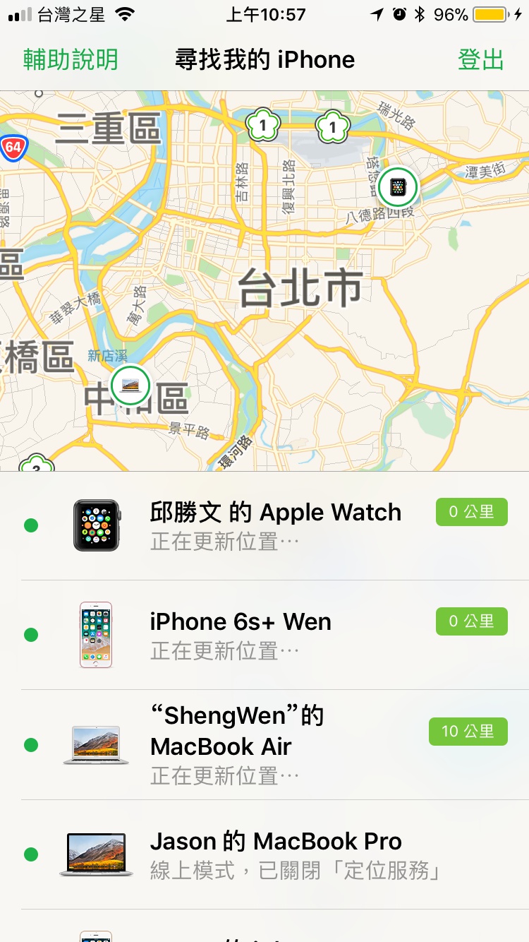 最近發現自己的Apple裝置數量眾多,心血來潮想起有個App叫做尋找iPhone,便發現居然有好多裝置連上線,我可立即知曉它們的大略位置。裝置包含:Macbook Air、Macbook Pro、iPhone 6、iPhone 6s+和Apple Watch Series 3,其中有一半不是我的XD~