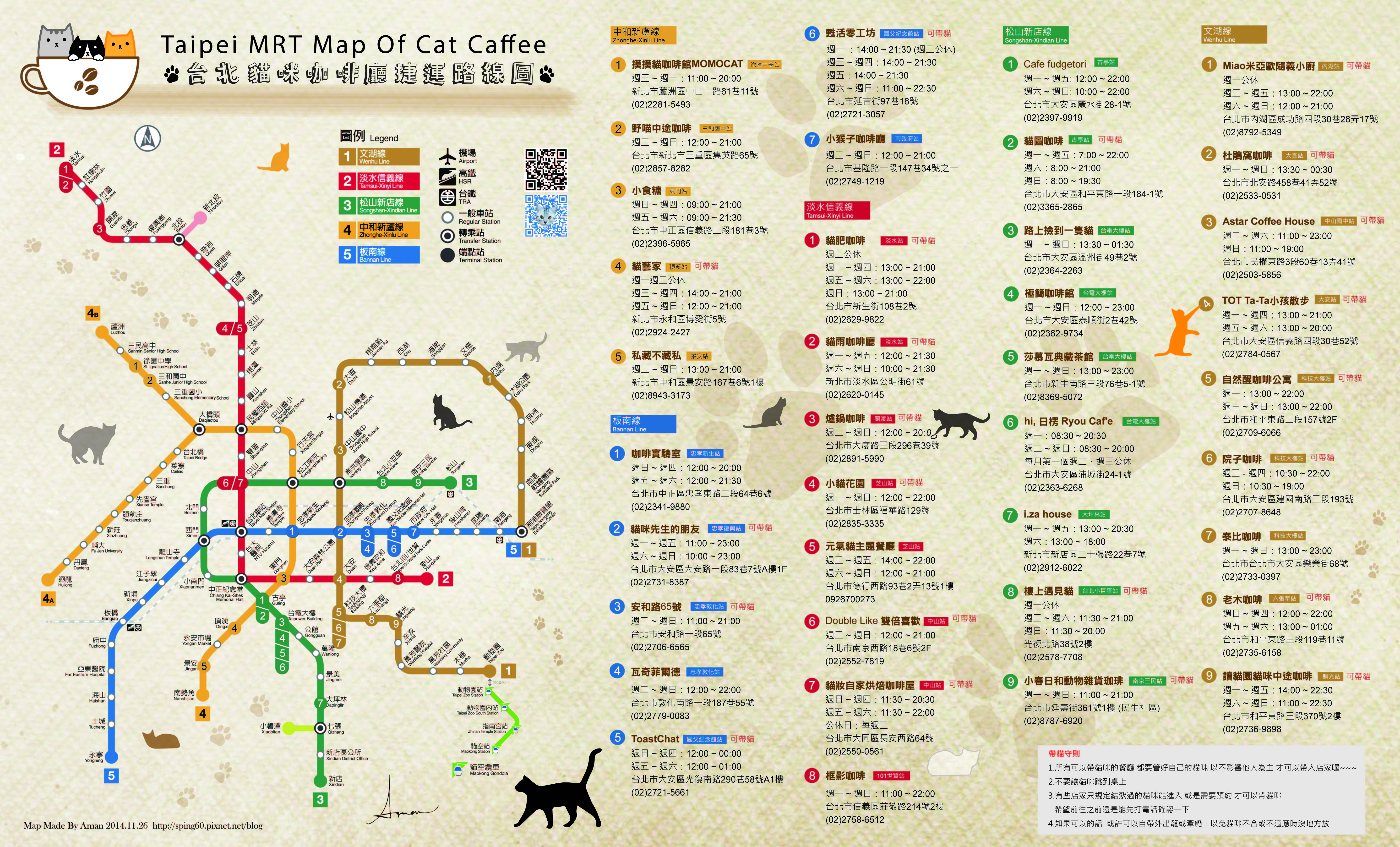 搭了八年捷運的我,第一次看到不是給人用的捷運地圖-台北貓咪咖啡廳捷運地圖,讓人感到很新奇!依此類推,其實也可以做給愛狗人士用呢!