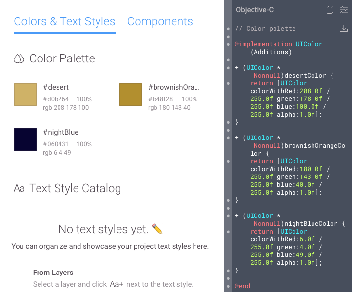 除了可以透過鼠標來查看元件相對應位置,還能透過外掛產生Objective C語法,當然還有其他語法如Swift、XML、CSS等等,大大方便工程師不必再自己打code囉~