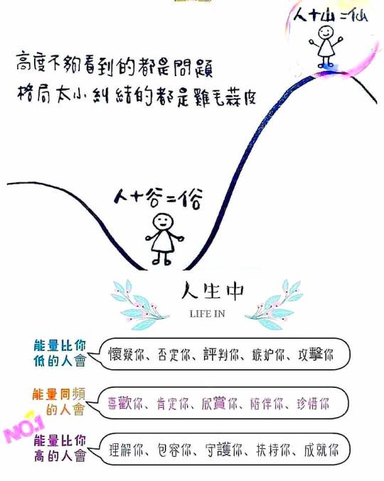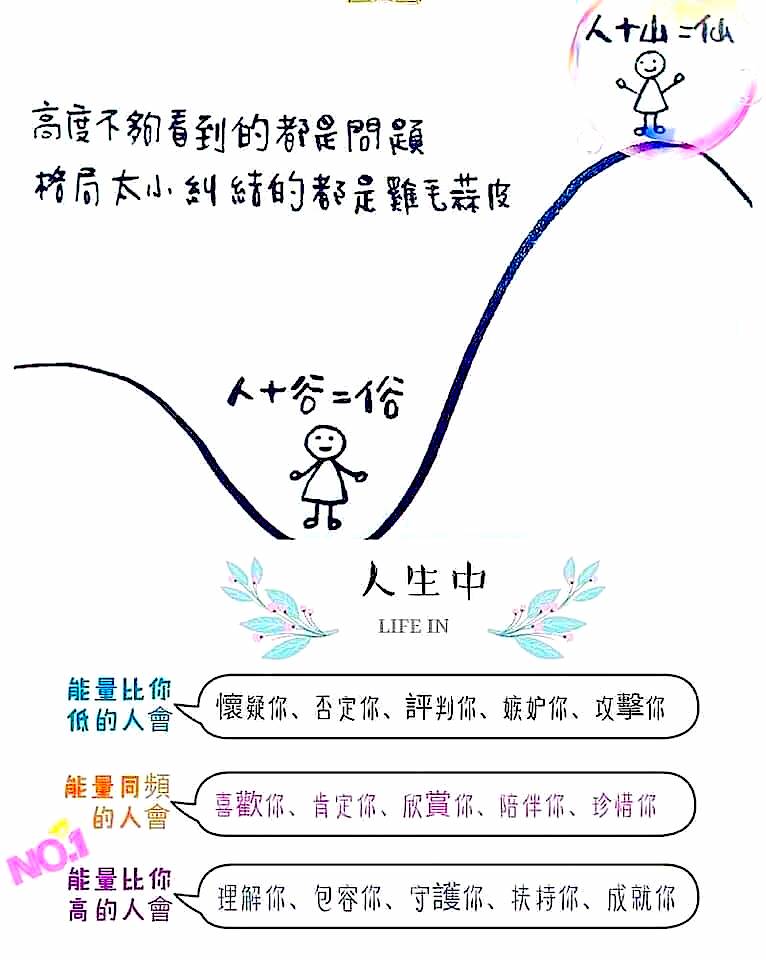 最近常看到一張圖仙與俗,沒想到這張圖做了非常棒的詮釋,你想當個仙人還是俗人?爬上山頂成為仙,滾到山谷就是俗。站在高處能看盡天下事,位在低處只為了芝麻小事。於是高度不夠所以看到的都是問題,格局太小糾結的盡是雞毛蒜皮呀~