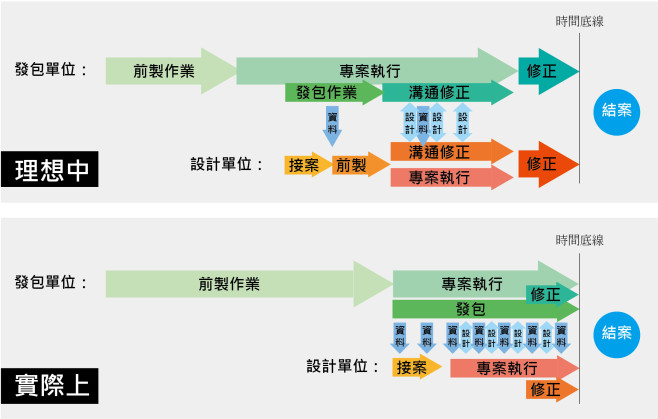 好在公司所接的案子是從比較有經驗的公司發包而來,那麼從接案到結案真的就像理想中那張圖,資料第一次幾乎給滿,剩下的就是溝通、討論、修正。