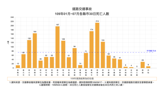 最近聽到強生同事請假回高雄,原來是他爸爸騎車被車子從後方追撞,這讓我驚覺原來之前查到的數據,高雄是全台灣車禍死亡數最高的區域⋯⋯