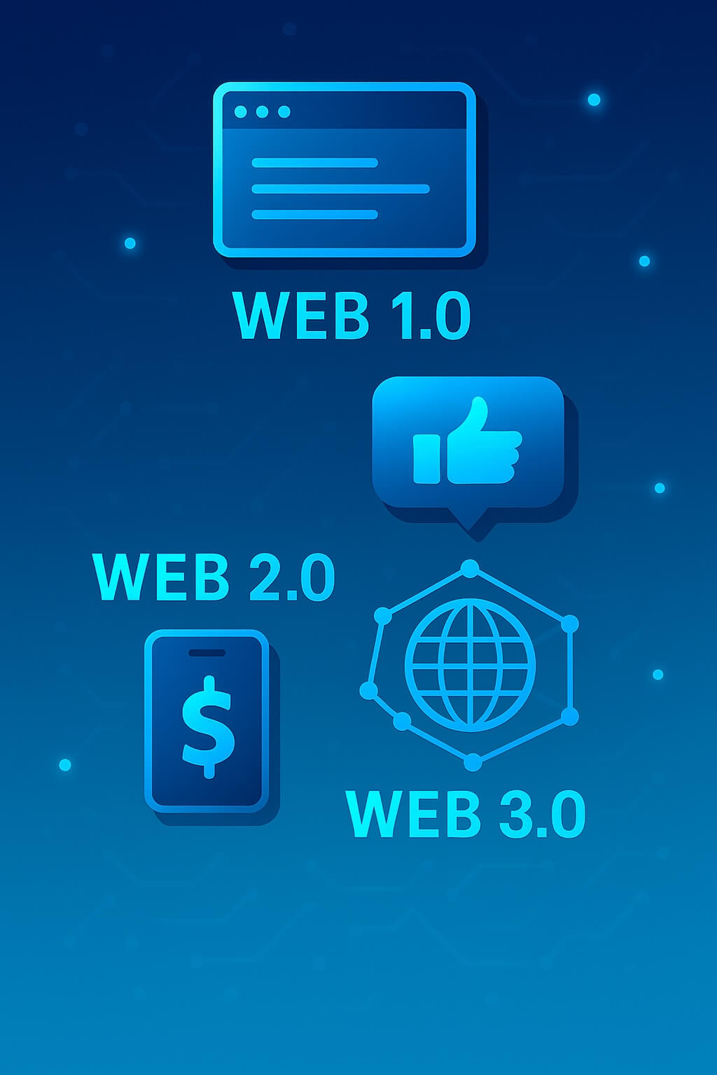 Web 1.0 是靜態、單向的資訊時代,使用者主要是內容的「讀者」。 Web 2.0 則轉變為社群互動與參與的時代,使用者可以「讀取與寫入」內容,誕生了部落格、社群媒體等互動式平台。 Web 3.0 以去中心化、人工智慧(AI)和使用者為中心為核心,旨在打造更安全、透明、以人為本且由使用者掌握數據的新網路生態。