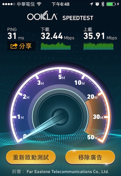 此圖為志宗先生5/30在台中車站所測試4G的結果圖,這數字真令人感到興奮!因為我到現在還沒測過WiFi超過40Mbps呢~